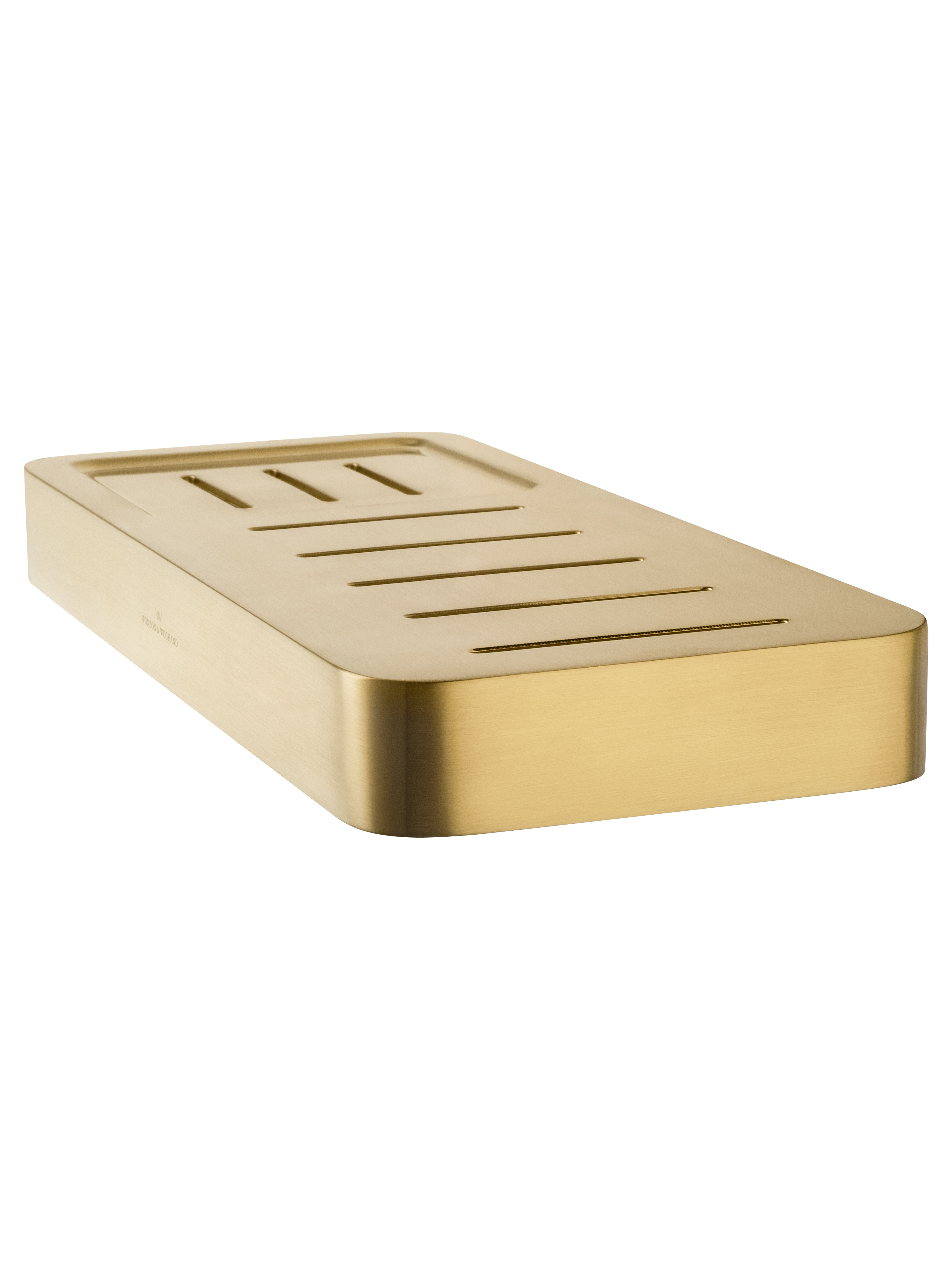 Материал и покрытие: Металлическая часть изготовлена из латуни. Доступны в трёх вариантах покрытия: классический глянцевый хром, а также благородные брашированные золото и тёмный графит.