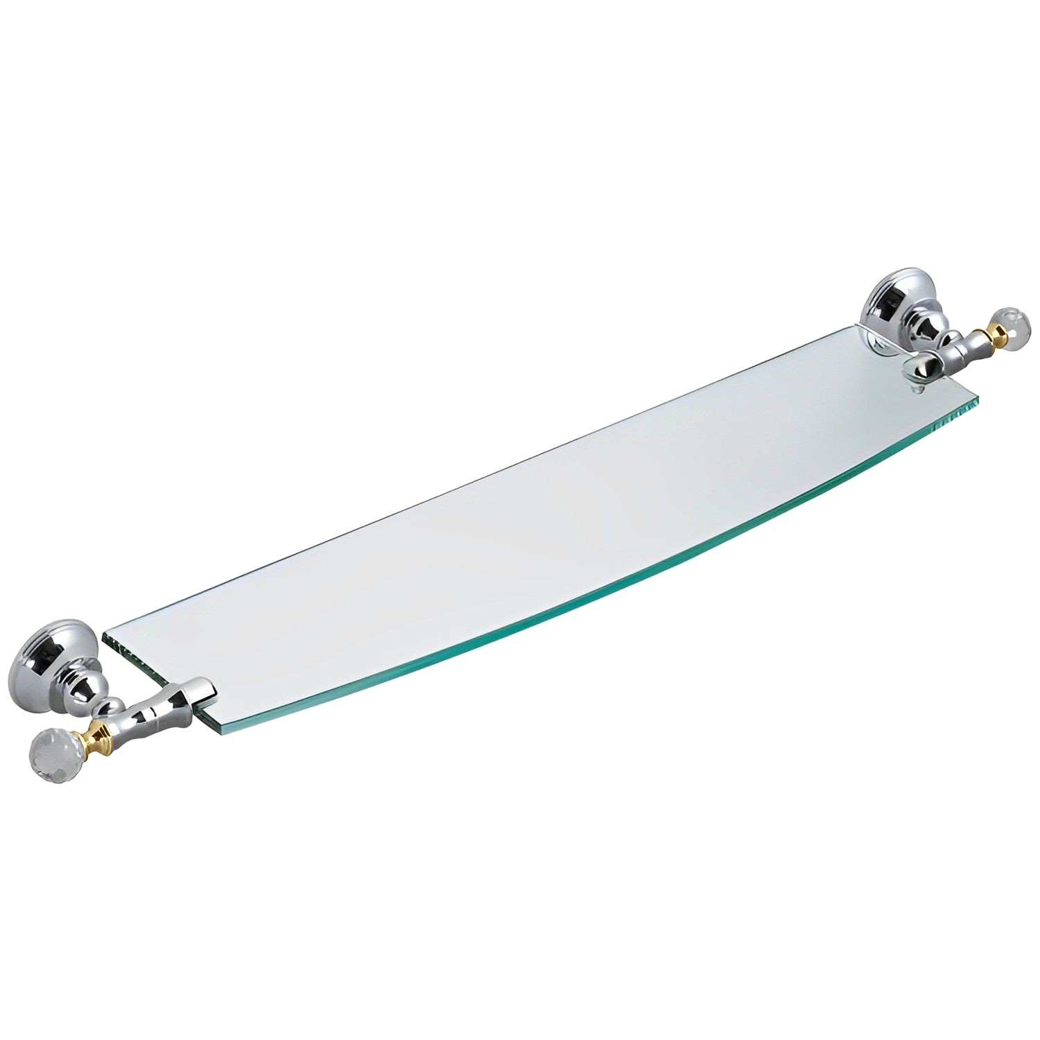 Разнообразие оттенков: доступны модели с глянцевым и матовым покрытием в нескольких цветовых вариантах (золото, хром, комбинация хрома с золотом, бронза), позволяя подобрать полку под разные стили интерьера.
