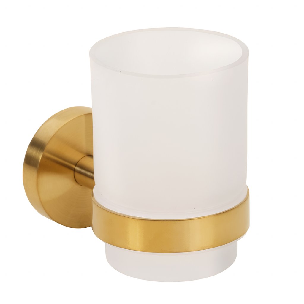 Стакан для зубных щёток Bemeta Sablo — элегантный подвесной аксессуар для ванной комнаты в матовом золотом исполнении.