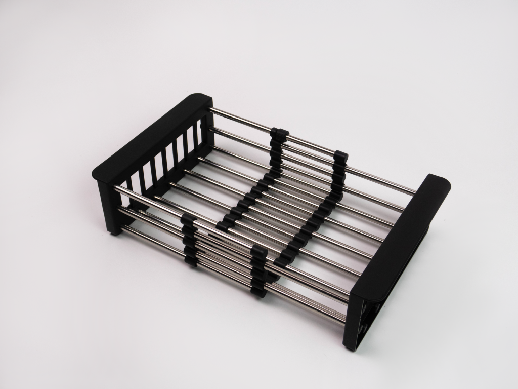 Коландеры Santegro ST17BL (графит), ST17SC (сатин) и ST17GD (золото) — это умные, функциональные и стильные вкладыши для мойки, которые превращают любую раковину в многофункциональную зону для мытья, сушки и подготовки продуктов. Благодаря телескопической конструкции, они автоматически подстраиваются под ширину чаши — от 35 до 50 см, идеально фиксируясь и не шатаются при использовании.