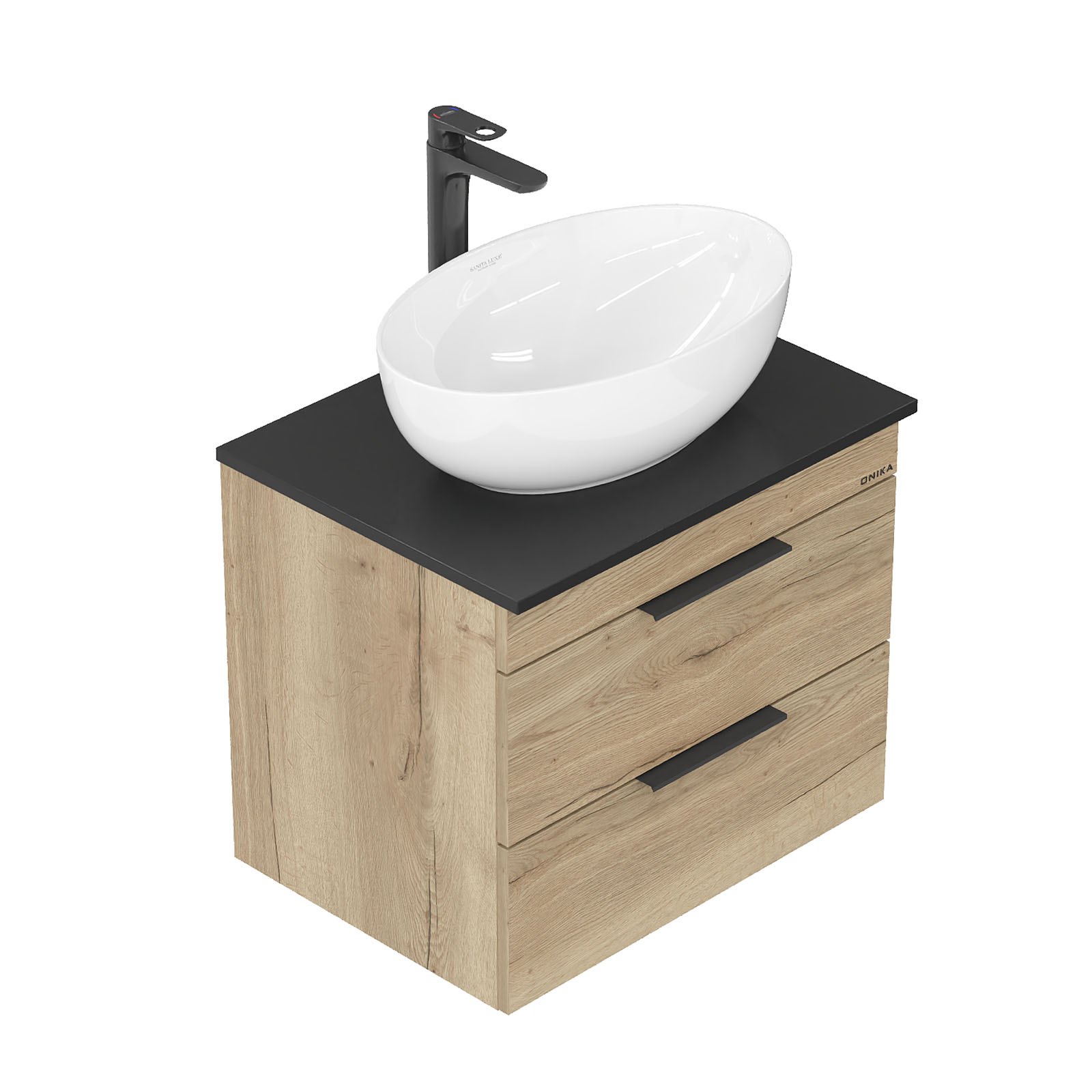 Универсальная столешнца для накладной раковины подойдет по стилю к любой тумбе подходящих размеров. Столешница выполнена из МДФ и покрыта несколькими слоями высокопрочной эмали.