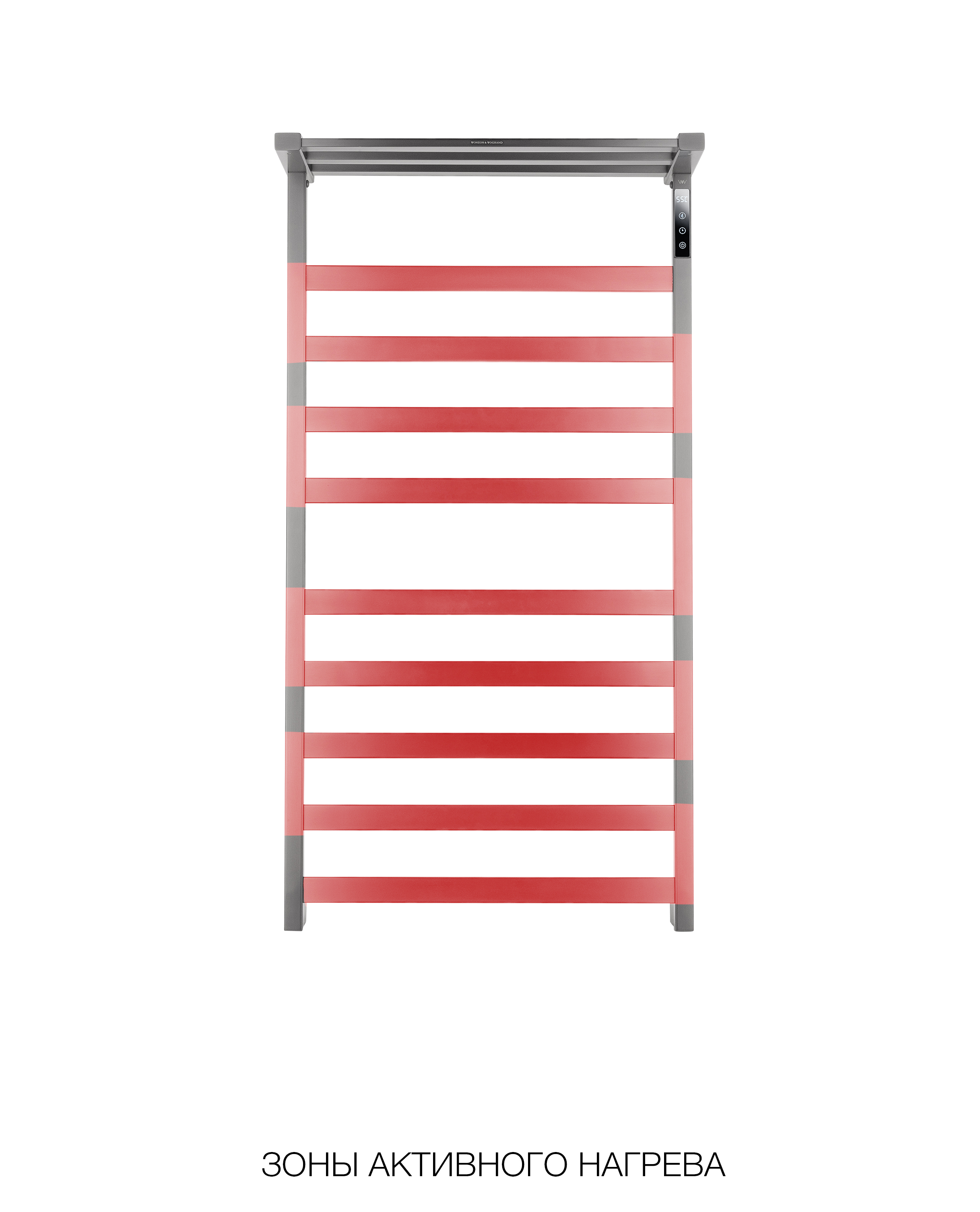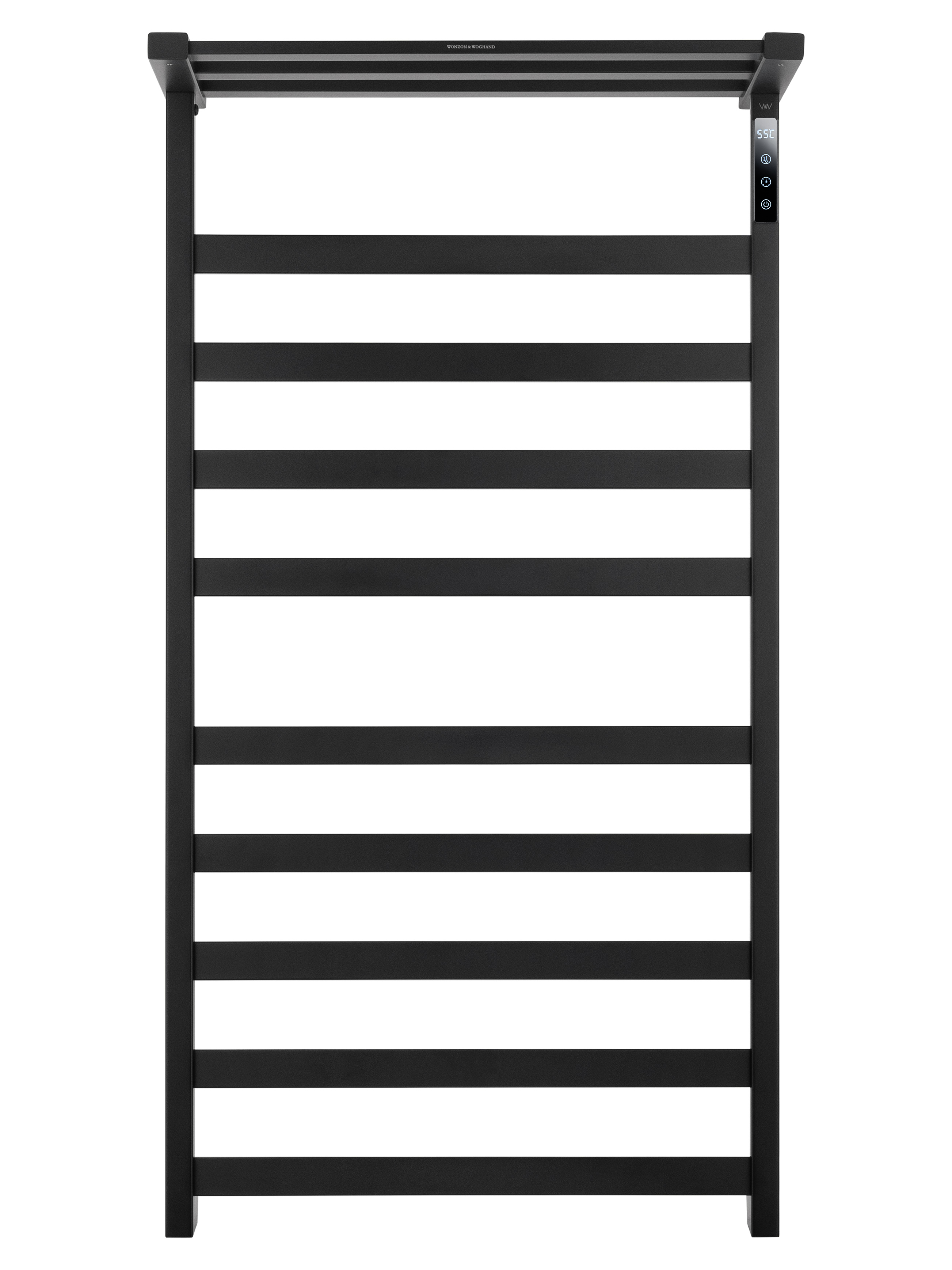 Электрический полотенцесушитель настенный WONZON & WOGHAND FRANKFURT (Черный матовый). Стильная «лесенка» из нержавеющей стали с порошковым покрытием черного матового цвета. Мощность 140 Вт, нагрев до 60°C (регулируется от 45°C). Оснащен сенсорным управлением, таймером и функцией отложенного старта. Нагревательный элемент — кабель из углеродного волокна, время нагрева до 60°C — 5 минут. Подключение: скрытое или провод с вилкой. В комплекте 9 перекладин. Габариты: 118 x 52.2 x 8.5 см.