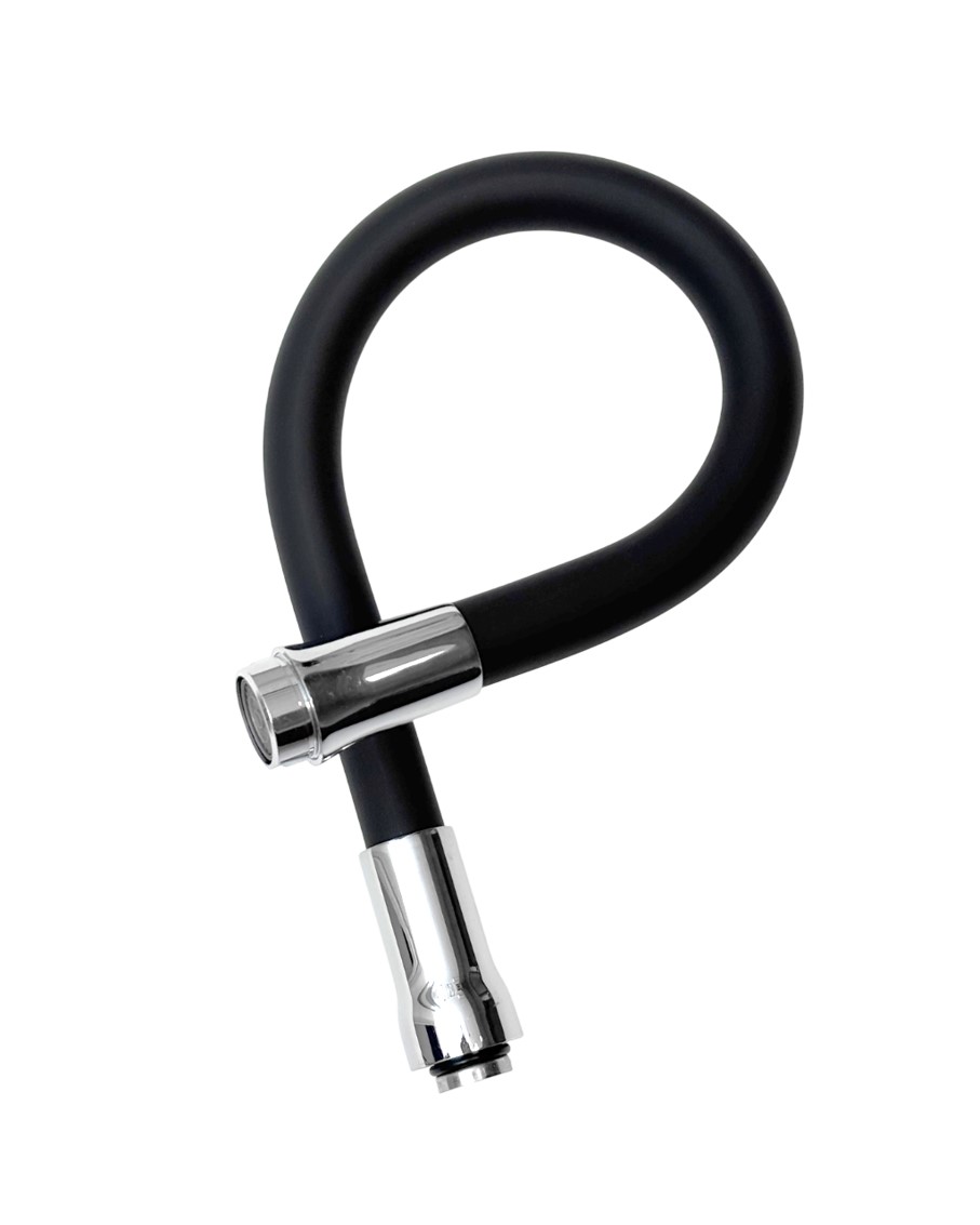 Гибкий излив для кухни ESKO, цвет черный/хром. Комплектующее для смесителя, позволяющее заменить стандартный излив. Материал корпуса: нержавеющая сталь и EPDM (синтетический каучук) для эластичности. Тип излива — гибкий, круглого сечения. Аэратор имеет 1 режим распыления. Цветовое решение: черный корпус с хромированными элементами. Гарантия на аксессуар — 5 лет, срок службы — 5 лет. Комплект поставки: гибкий излив в сборе (упаковка).