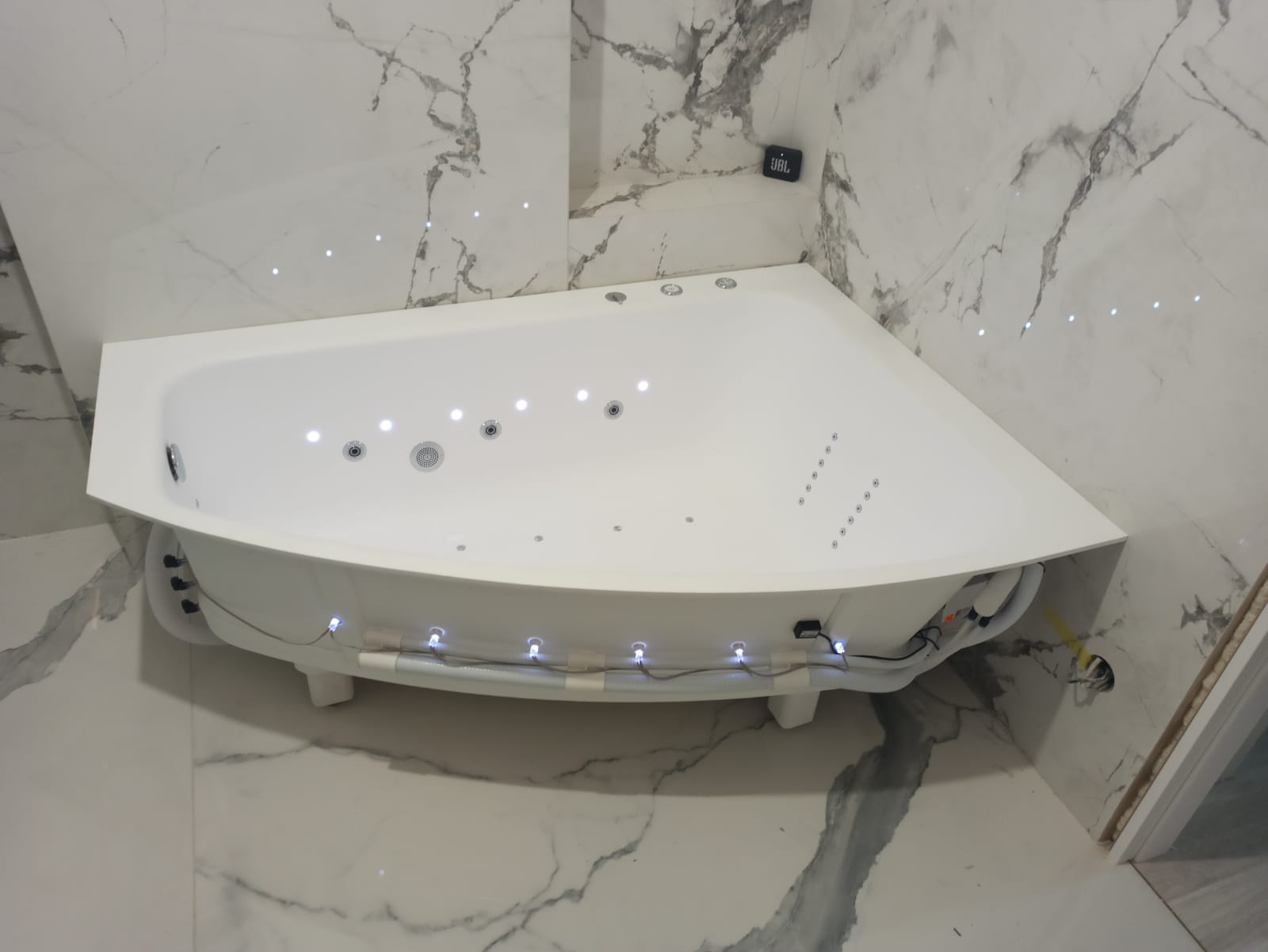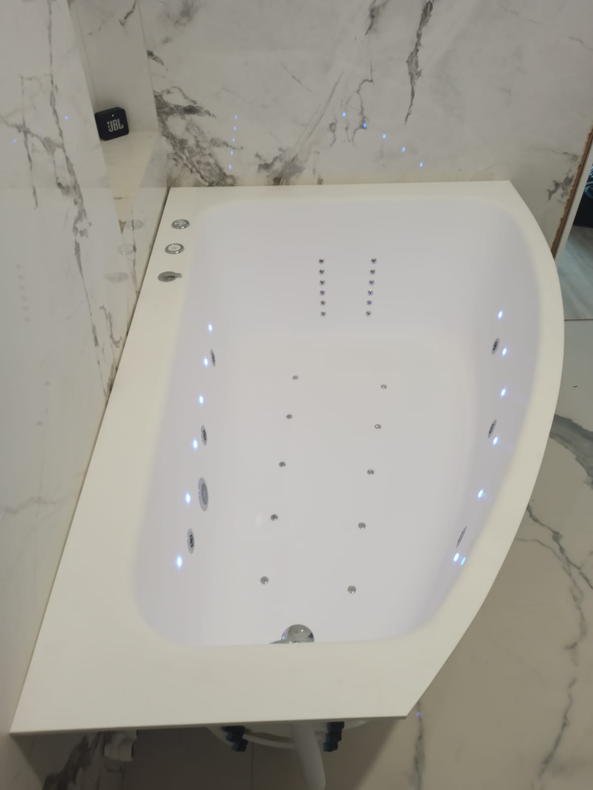 - Установка гидромассажа и аэромассажа выполняется в акриловые и каменный ванны всех форм и размеров.